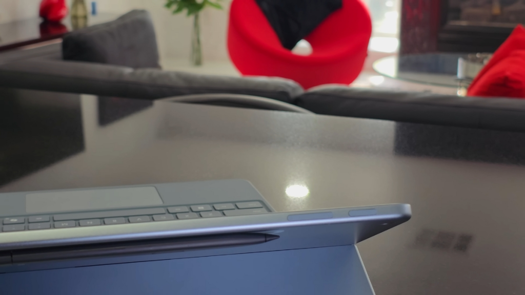 On the back, Microsoft keeps things minimal with its glossy logo and a refined matte finish for a subtle premium touch. The rear also houses an Ultra HD 10MP camera and a magnetic strip for the Surface Slim Pen.